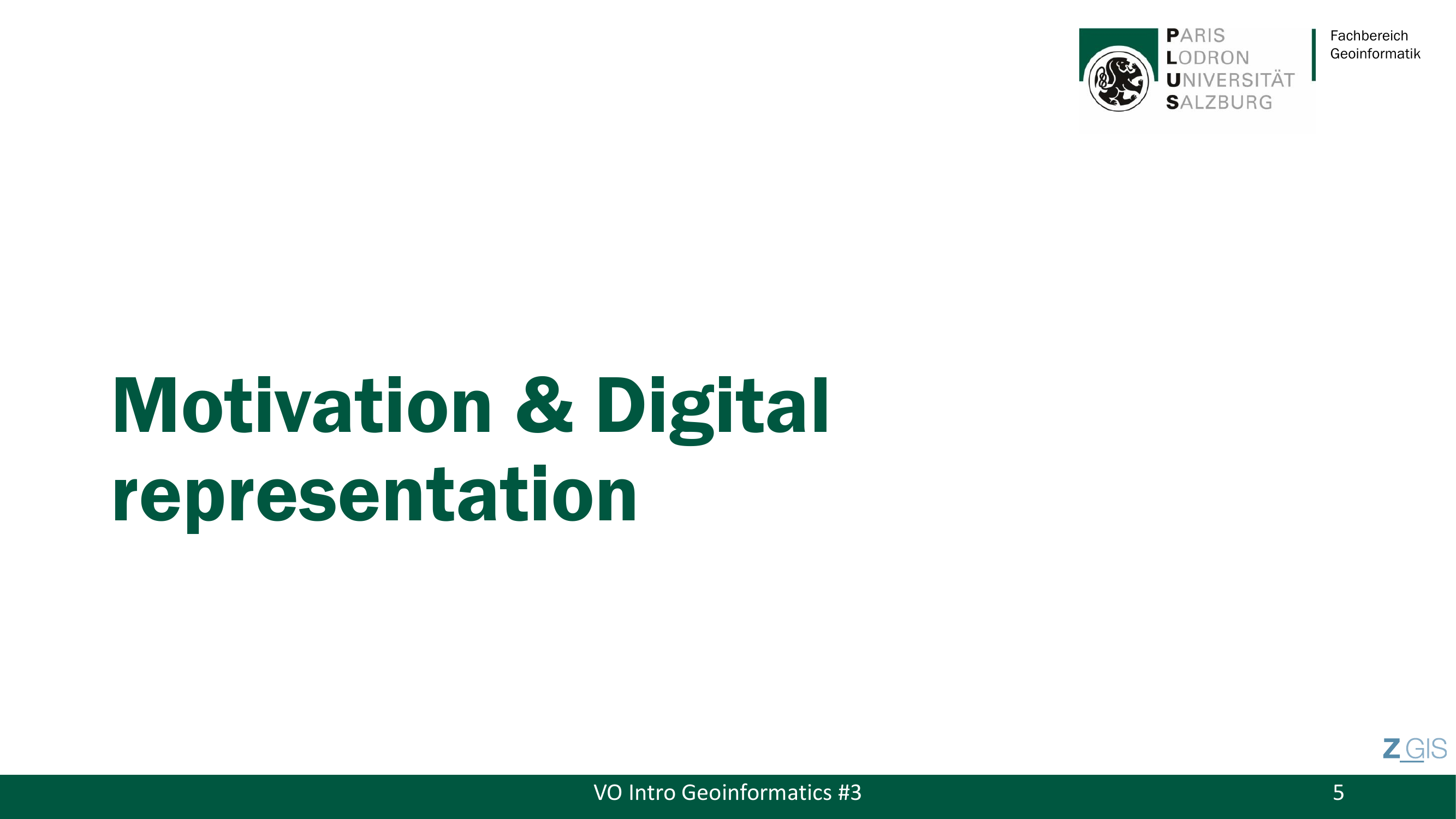Dieses Gesamtbild -- Realitaet, konzeptuelle Modelle, Datenmodelle, Repräsentationen -- ist die zentrale Lernuebersicht fuer die gesamte Session. Das Thema Repräsentation, oder breiter gefasst Ontologie (Ontology), ist eines der fundamentalen Themen der Geoinformatik als Wissenschaft (GI Science).