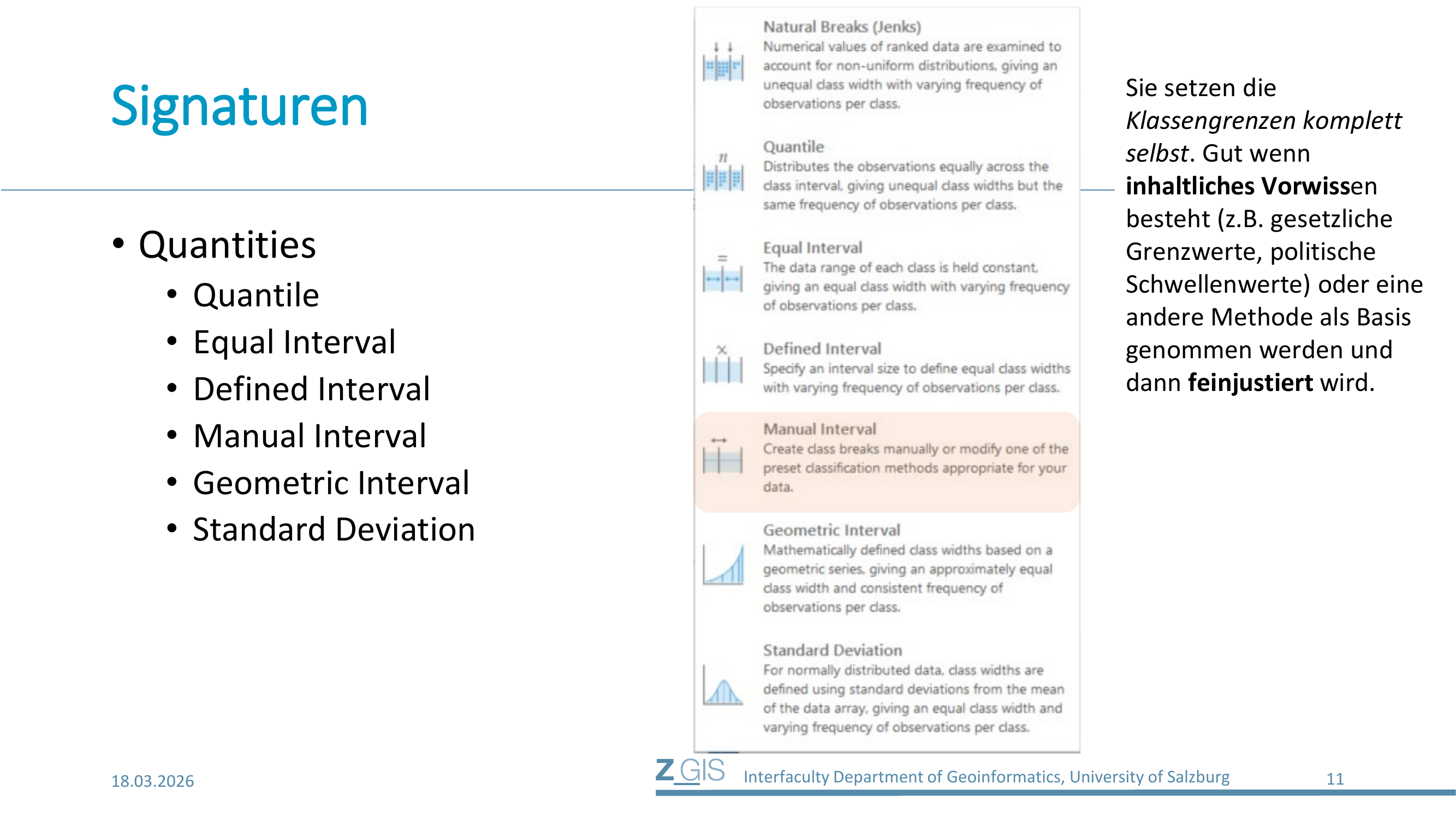 Manual Interval gibt dem Nutzer die vollständige Kontrolle: Die Klassengrenzen werden komplett manuell gesetzt. Man kann jede einzelne Grenze frei wählen, um die Einteilung exakt an die Fragestellung anzupassen.